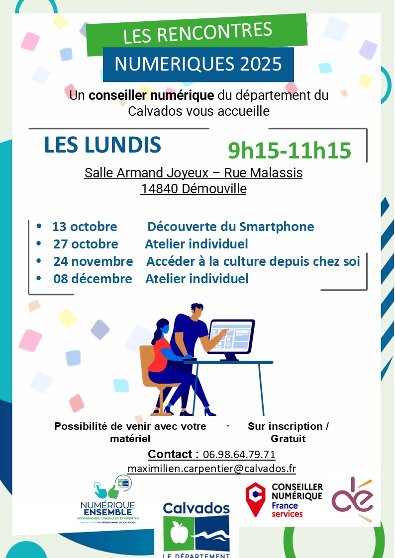 Grâce à un partenariat avec le Conseil Départemental du Calvados, des ateliers numériques auront lieu deux lundis par mois par un conseiller numérique.